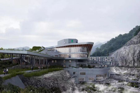 区块内的重点项目——未来花园悦榕庄酒店,坐落在崖壁剧院的东侧,是一个以舒适、豪华以及低碳环保为主要设计思路的高奢酒店品牌,其位于山腰上的酒店顶层平台被充分利用,敷设光伏系统,为整个酒店的空调和泛光照明提供电能。